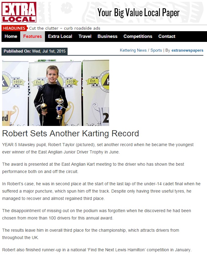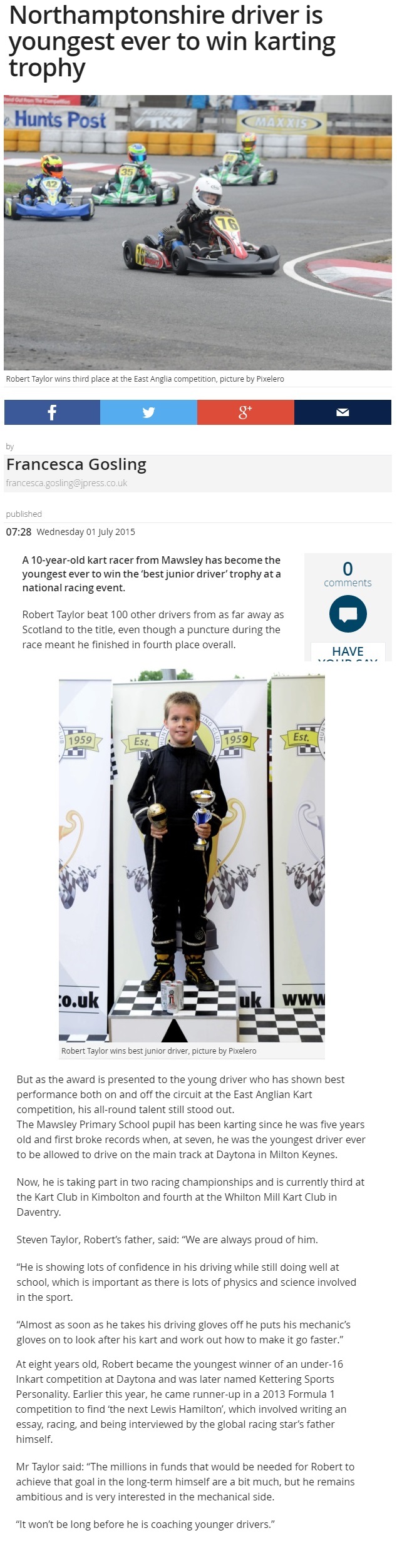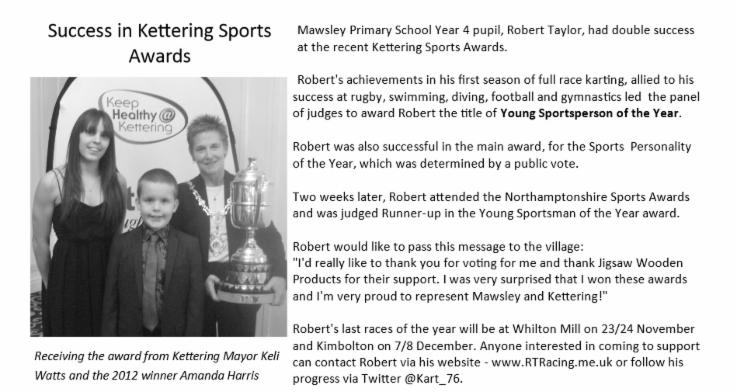 Robert Taylor - Kart Racing - Kettering Sports Personality 2013